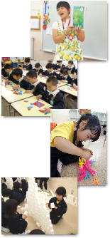 子ども達にとっては、遊び同然の知能育成カリキュラムなど、「あたま・こころ・からだ」をバランス良く育成する要素が一日の中に散りばめられています。