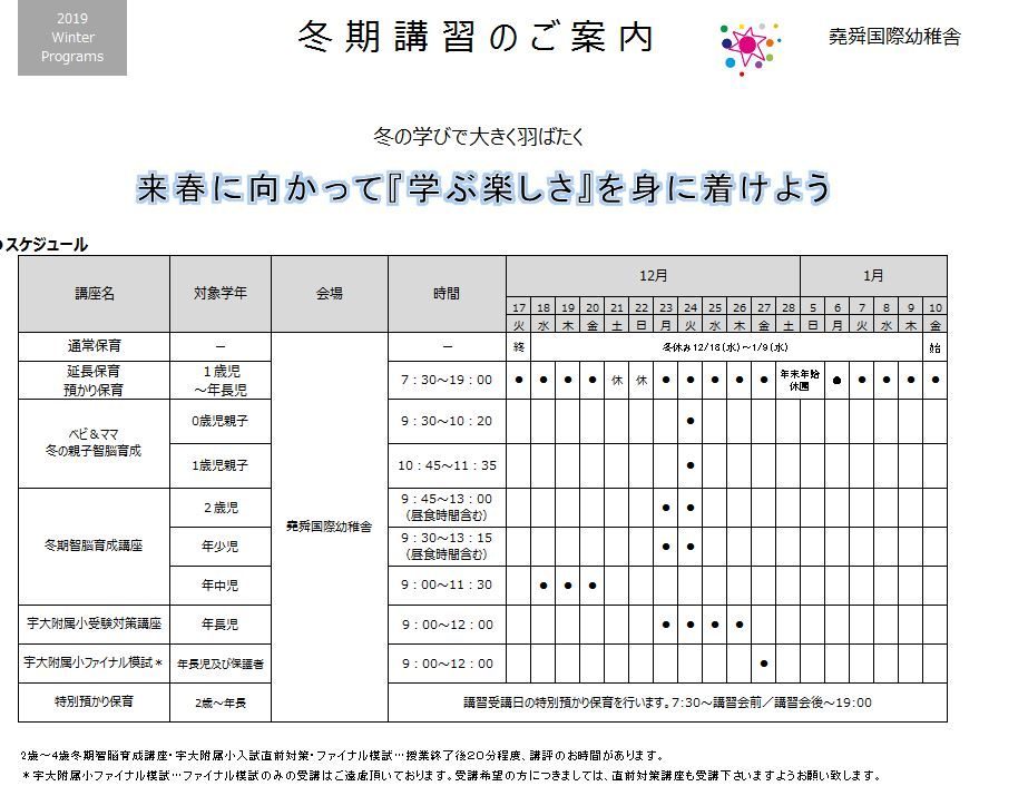 2019年度 冬期講習 会場:堯舜国際幼稚舎(宇都宮市下戸祭2-6-6)